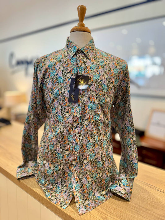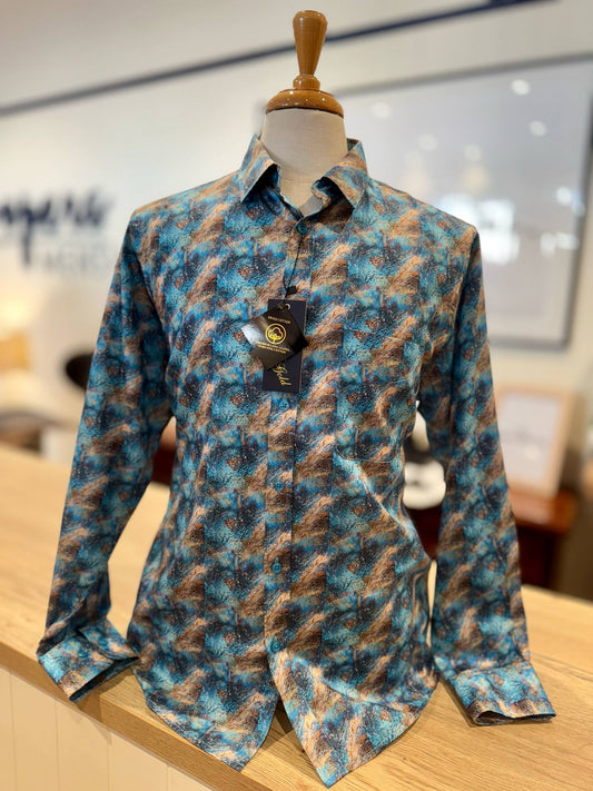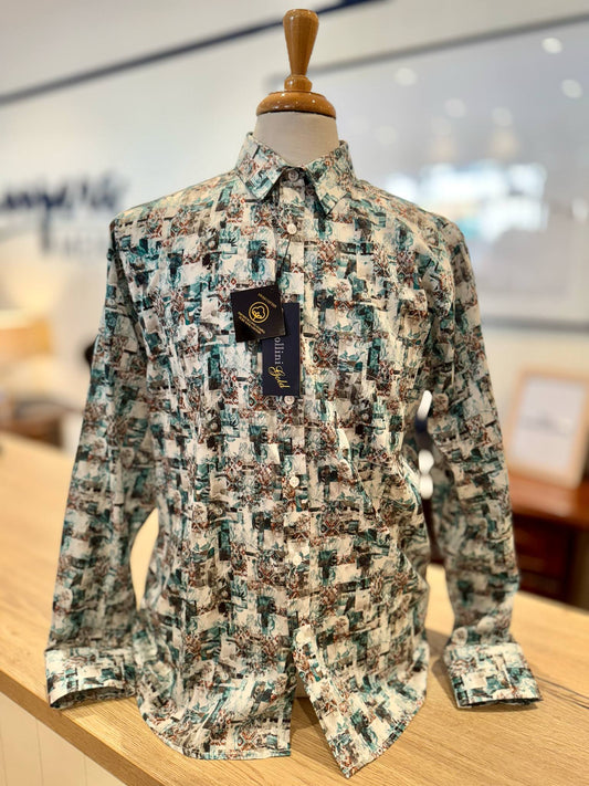 Patchy Teal Swiss Cotton Shirt