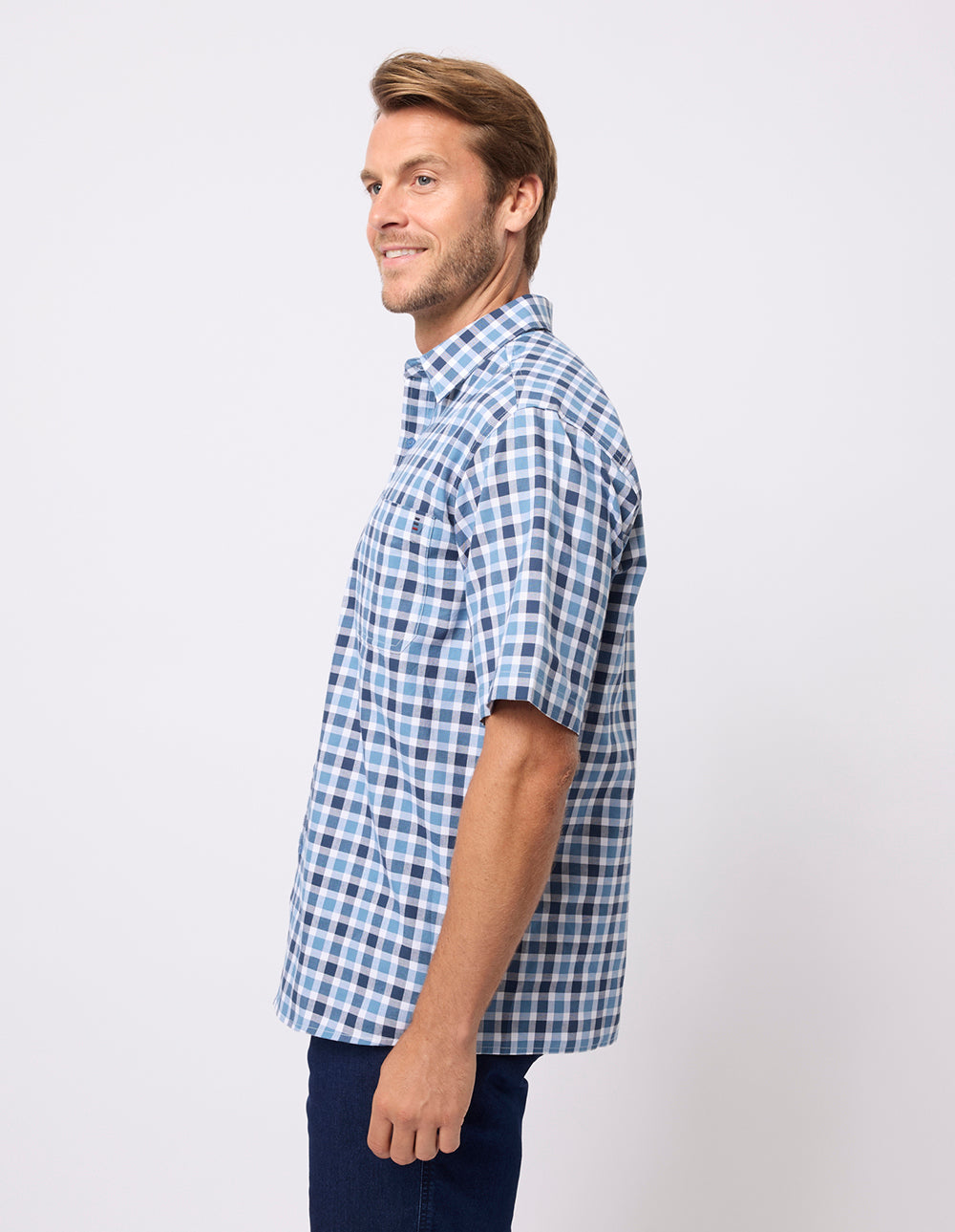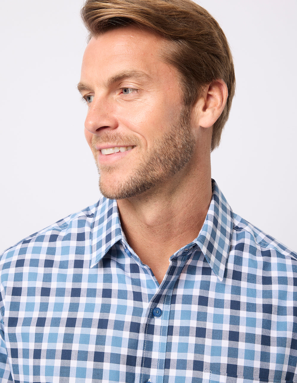 Crafted from 100% cotton, the Larry Oxford Shirt offers breathable comfort and durability. Its teal and navy blue check pattern delivers a refined, versatile look suitable for both casual and professional settings. Featuring a single chest pocket, this shirt combines practicality with classic style, making it a smart addition to any wardrobe.