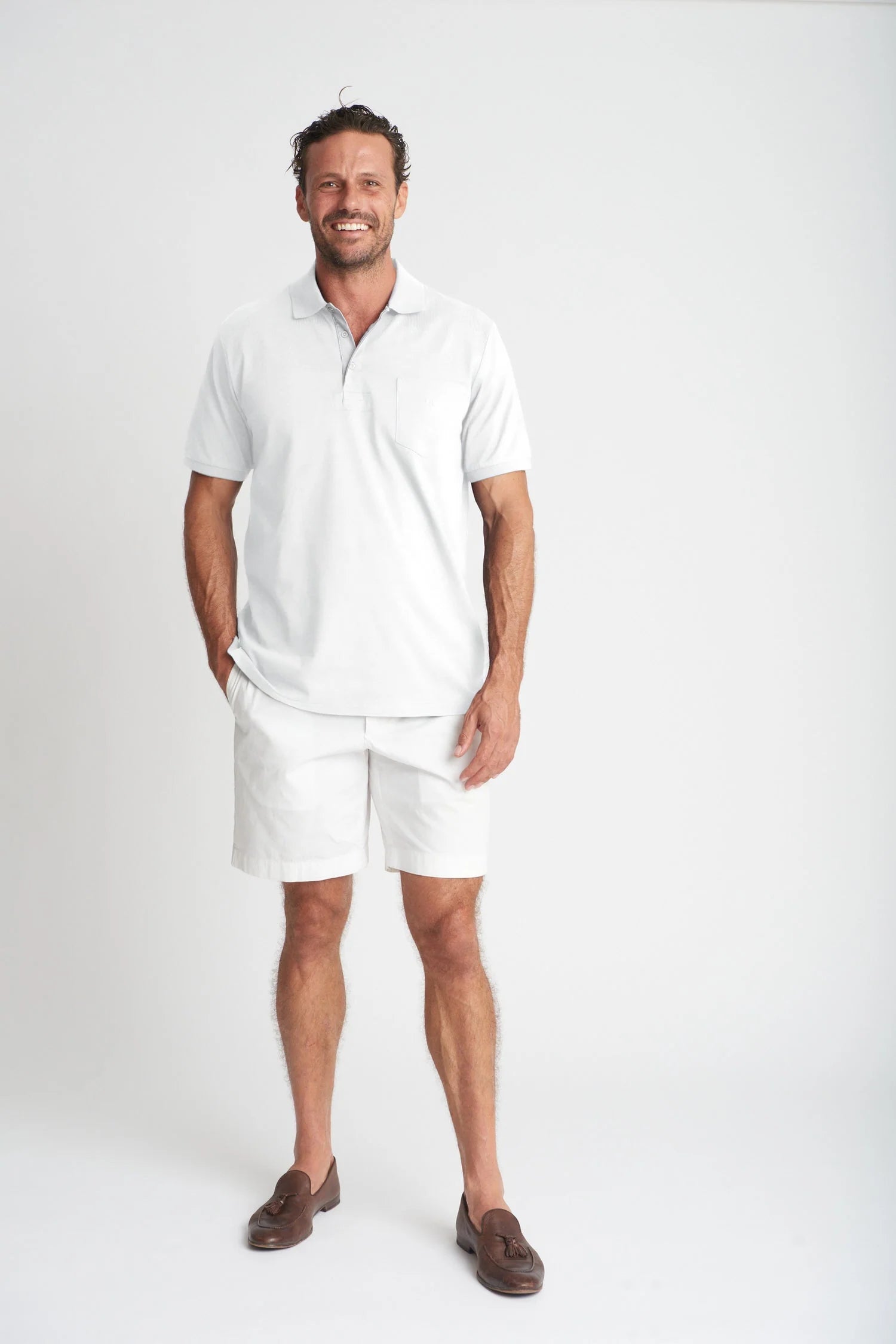 Crafted from 100% Goondiwindi cotton, this white polo offers exceptional breathability and softness. Its premium cotton fabric ensures durability and comfort, making it ideal for everyday wear or professional settings where a clean, classic look is essential.